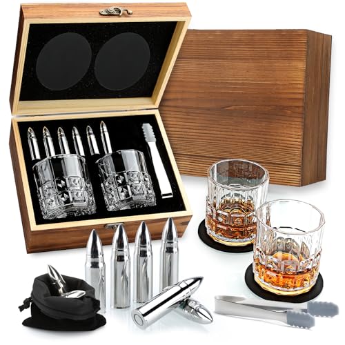 Sovyime Whisky presentset – whiskyglas set med 2, whiskyglas och 6 whiskystenar i rostfritt stål och trälåda, whiskypresentset för män, födelsedagspresenter för män, pappa, far, make, bror, brudgummar
