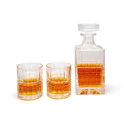 Krosno Whisky-set | 1 × 950 ml Dekanter & 6 × 300 ml Glas | Fjord Collection | För hem, restauranger & fester | Present för Whiskyentusiaster | Blyfritt kristallglas