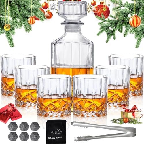 Whiskykaraff, whiskykaraff för män med 6 whiskyglas, 6 kylande whiskystenar blyfri whiskykaraff spritkaraff för whisky, bourbon, rompresent