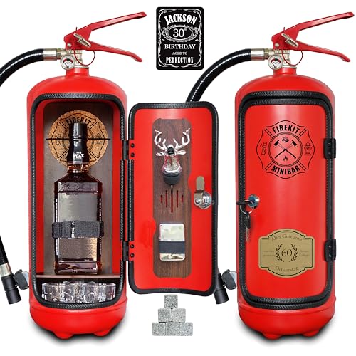 Brandsläckare Minibar med 7-delat tillbehörsset inklusive 3 snapsglas, whiskystenar, sprithällare och korkunderlägg