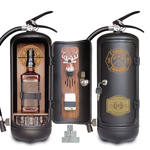Brandsläckare Minibar BRANDMAN med 7-delat tillbehörsset inklusive 3 snapsglas, whiskystenar, sprithällare, tändare och korkunderlägg