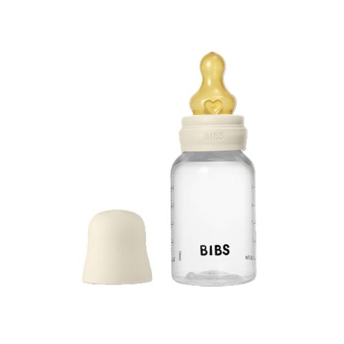 BIBS Glass Baby Bottle Round Latex Slow Flow 120 ml Ivory