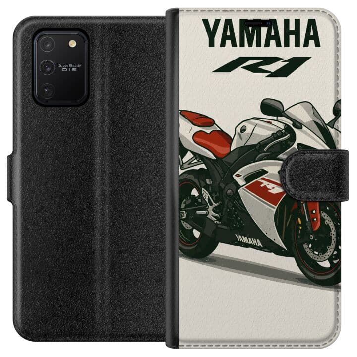 Samsung Galaxy S10 Lite Plånboksfodral Yamaha R1 affisch sportbike motorcykel racing bike vit röd klassisk japansk motorcykel retro design