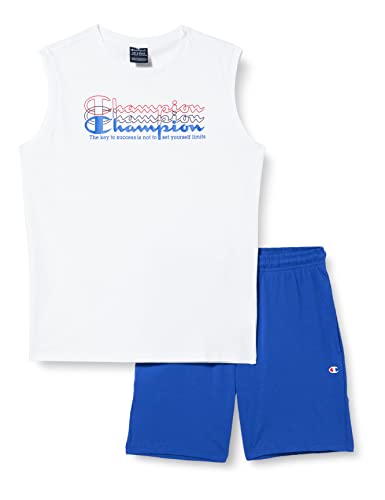 Champion Legacy Graphic Shop Double Logo S/L T-Shirt & Shorts set med barn och ungdomar, (Vit/Koboltblå), 9-10 anni