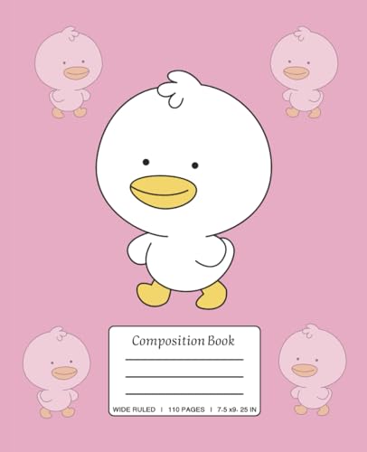 Cute White Duck on Pink Notebook – 110 Pages, 7.5 x 9.25, Journal for Kids & Teens