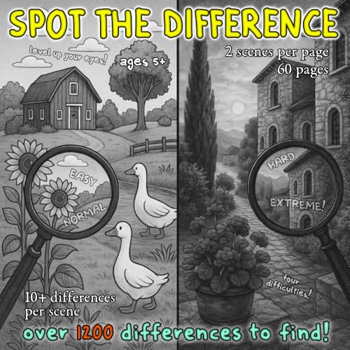 Level Up Your Eyes! A Black & White Spot the Difference for Kids 5+: Start Easy, Get Tricky! — A Progressive and Bizarre Puzzle Book That Builds Focus and Observation Skills