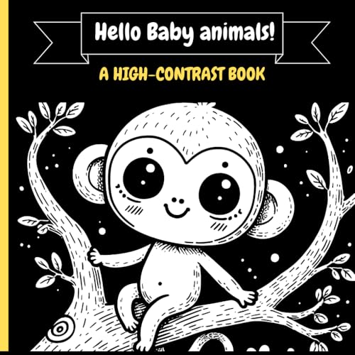 Hello Baby Animals: Black and White Images to Enhance Newborns' Visual Development 0-12 Months; A truly captivating high-contrast book for infants ... Stimulate Your Baby, Adapted to Baby's Eyes