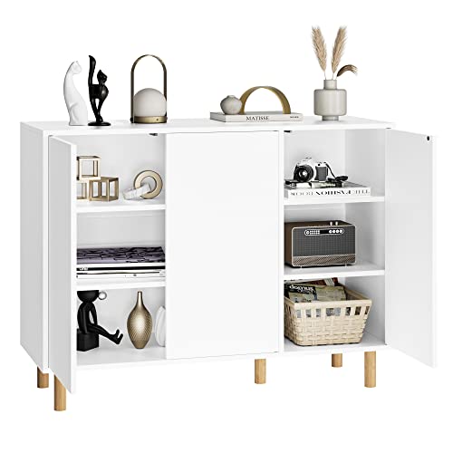FirFurd Skänk med 3 dörrar byrå vitt köksskåp, halkfri design, justerbara hyllor, 107 x 40 x 80 cm (B x D x H)