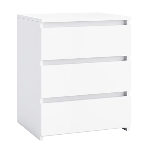 FirFurd Sängbord med 3 lådor sängskåp resårsäng sängbord sidobord för vardagsrum sovrum vitt