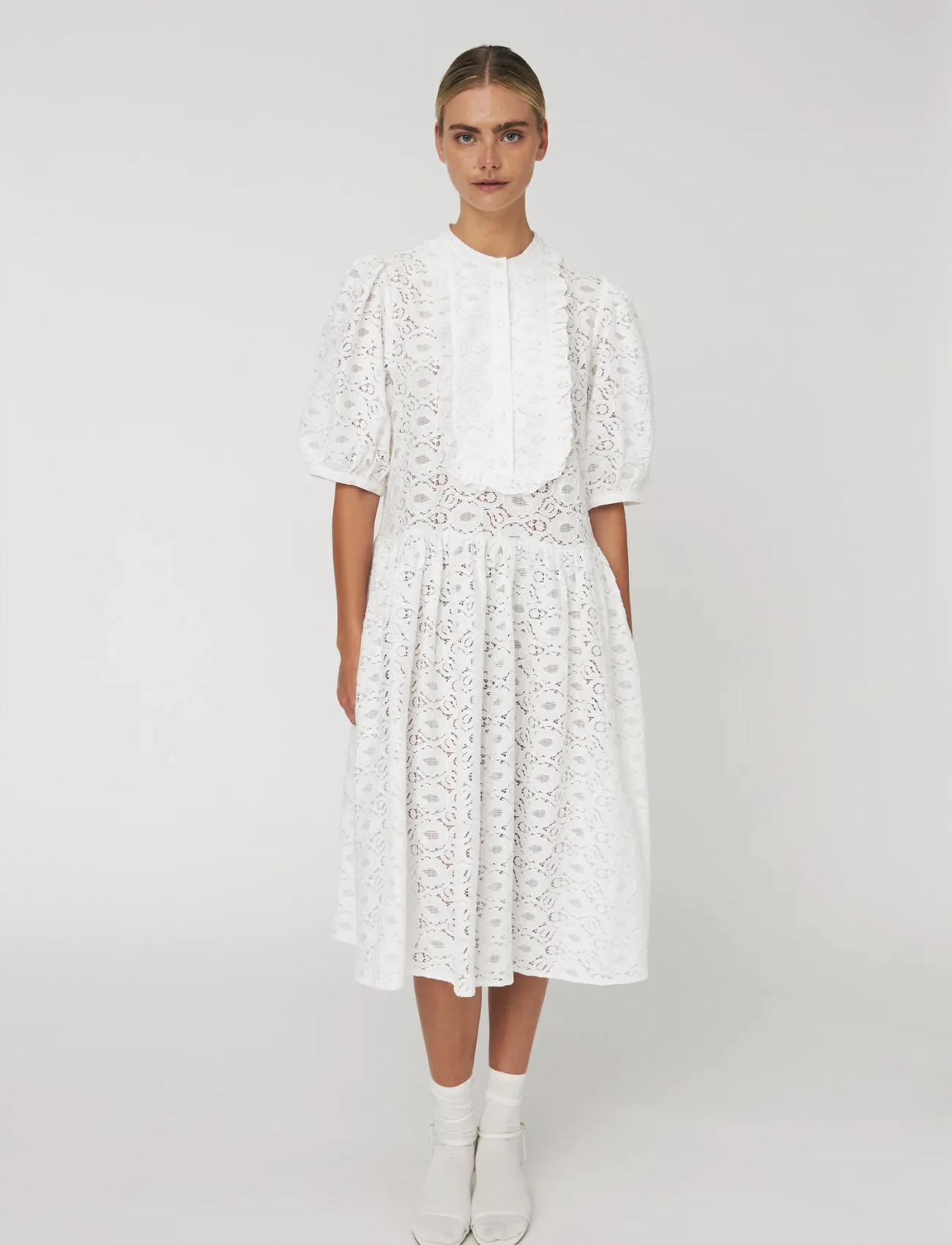 White lace back dress