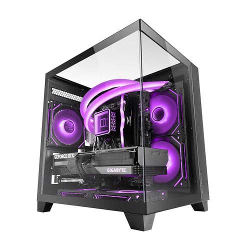 Noua Nexus PH100, Case Gaming MicroATX Kompakt, ARGB-PWM-fläkt, Dubbelfönster härdat glas, Micro Tower med USB 3.0 och TYPE-C, Vit