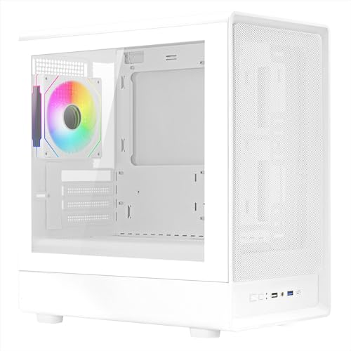 Nuwo Blitz R25 vitt fodral Micro-ATX för PC Desktop Office Gaming Mini Tower 0,50 mm SPCC med 3 fläktar fast regnbågsbelysning sidopanel i härdat glas (B x D x L: 388 x 350 x 203 mm)