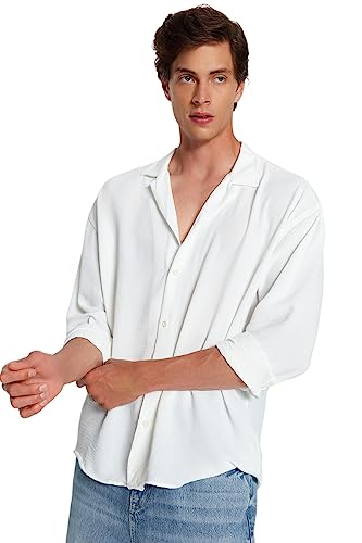 Trendyol TMNSS23GO00053 Skjorta, Orchid Vit/Flyaway, L för män, Vit Orchid/Flyaway, L