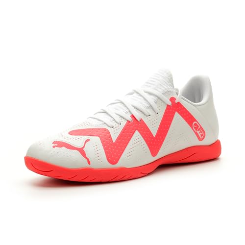 PUMA Mens Future Play Indoor Trainer Soccer Shoes, PUMA Mens White-Fire Orchid, 12.5