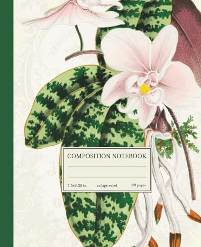 College Ruled Composition Notebook: White Orchid Vintage Flower Botanical Illustration | Cute Floral Aesthetic Journal For School Girls, Teens, Women | Lined White Pages