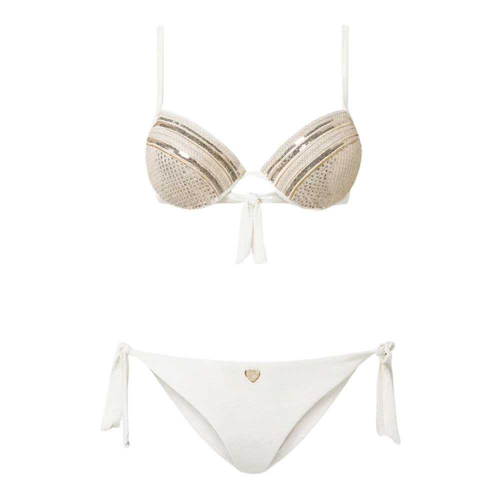 Twinset, Badkläder , Dam, L, Push-up bikini med paljettbroderi och stringtrosa med knytband i sidan