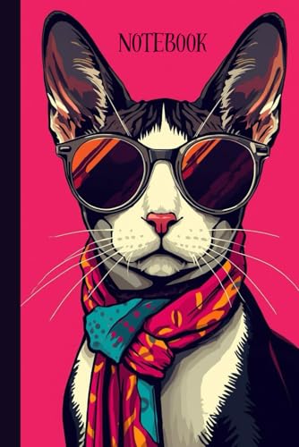 The Cool Cat (Diary, Daily journal, Diary planner, Notebook) 365 day: Stylish Black White Cat Wearing Sunglasses organizer with hourly schedule