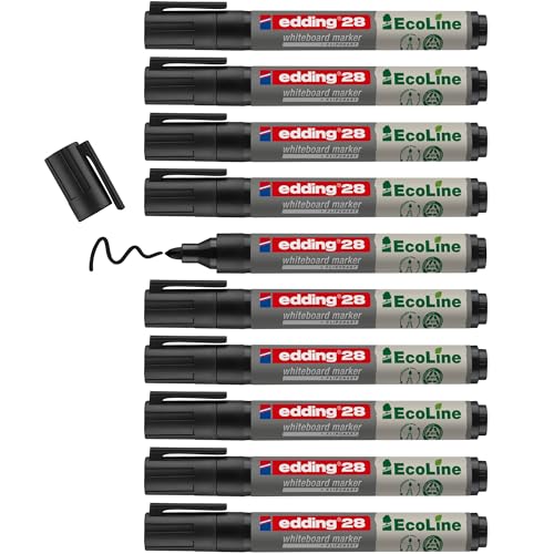 edding 28 Ecoline whiteboardmarker – svart – låda med 10 pennor – rund spets 1,5–3 mm – torkas bort utan vatten – för whiteboard, blädderblock, anslagstavla, memo-tavla – sketcher – går att fylla på