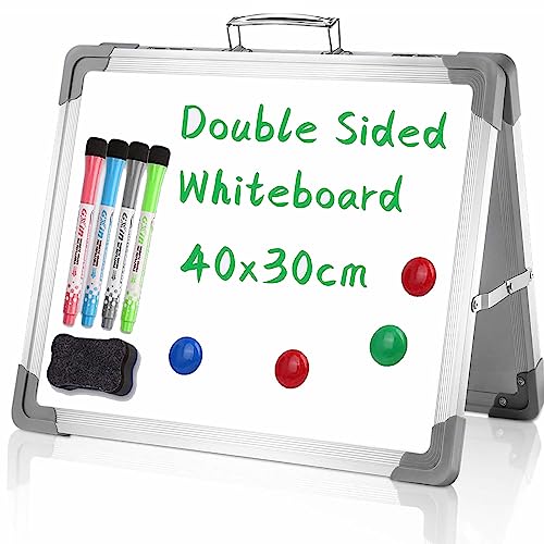 OWill whiteboard, 20 x 30 cm liten magnetisk whiteboard med stativ, bärbar dubbelsidig whiteboard staffli för barn som ritar i skola och hem