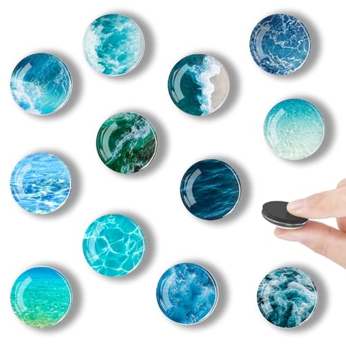 Kylskåpsmagneter, 12 Delar Färgglad Kylskåpsmagnet i Glas, Magneter för Magnettavla, Havskylmagneter Dekorativa för Kylskåp, Whiteboard, Anslagstavla, Kök, Barn och Vuxna Present
