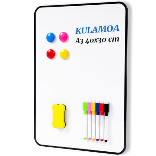 Magnetiskt mini whiteboard-set – magnetisk vägg för barn i A4-format (30 x 21 cm) inklusive torra avtorkbara pennor, magneter och suddgummi. Perfekt för barn.