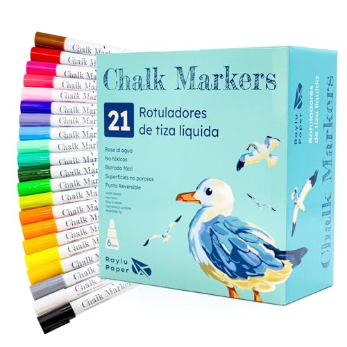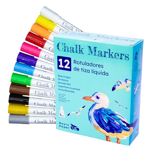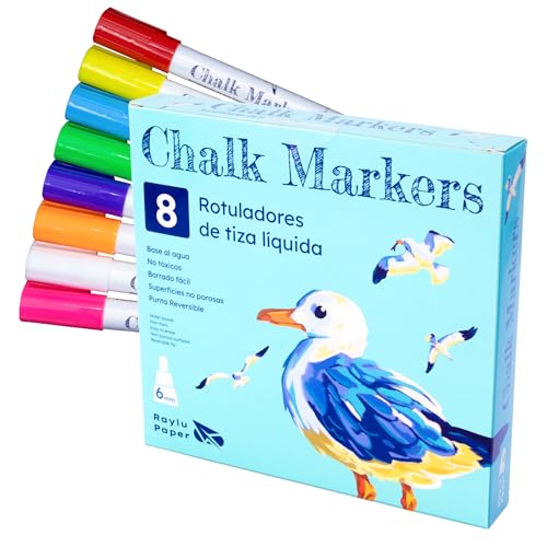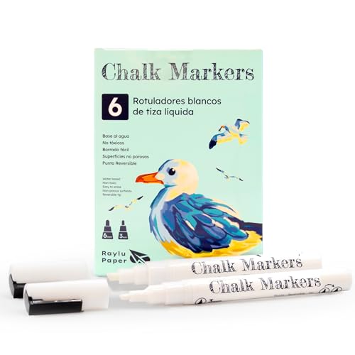 RAYLU PAPER Pennor med flytande krita, raderbara och vändbara spetspennor, whiteboardpennor för svart skiffer, perfekt för whiteboard, glas, keramik