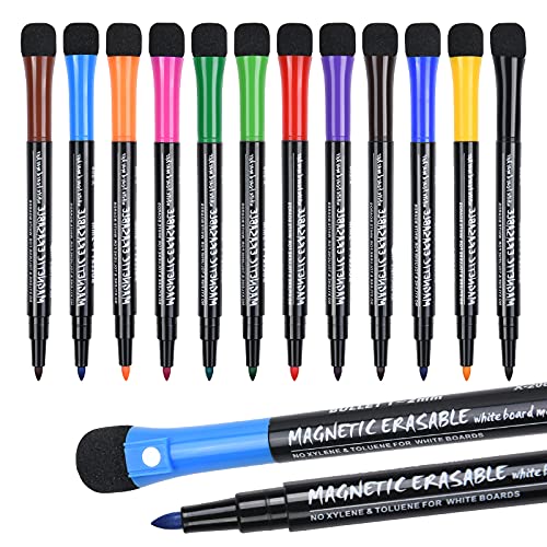 Vicloon Whiteboard penna med 12 färger, avtorkbara pennor, torr rase-märkpenna med svampmagneter, svamp whiteboard pennor, torra avtorkbara pennor med suddgummi för fönster/glas/tavla