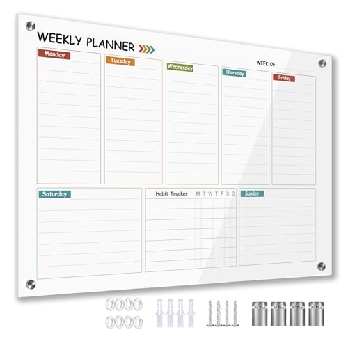 Marribol Glas färgglad veckoplanerare whiteboard för vägg, veckovis torr radering för vägg 61 cm x 91 cm, ramlös montering, stor veckoplanerare whiteboard för kontor/skola/hem