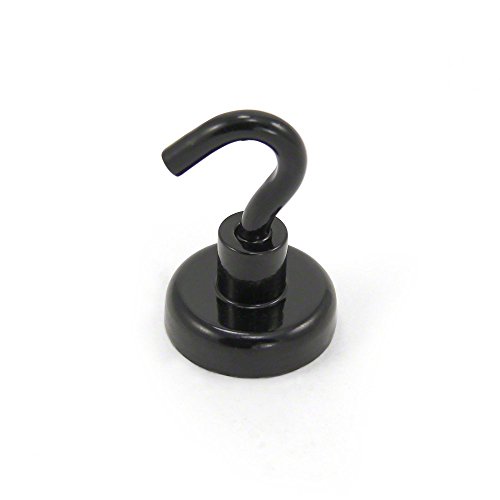 Svartmålad neodymmagnet med M5-krok för kylskåp, whiteboard, anslagstavla, arkivskåp eller kontor – 25 mm diameter x 36,5 mm hög – 20 kg drag