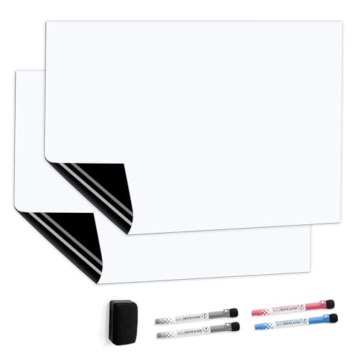 ANLIOTE Whiteboard magnetiskt kylskåp whiteboard ark 50 x 33 cm, lätt att skriva och torka, magnetisk torr radering för hem kök kylskåp inköpslista planerare kontorsmeddelande, 2 markörpennor och