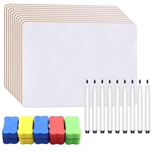 KAHEIGN 8 st små torra raderbara vita brädor, 21 cm x 30 cm dubbelsidig mini-whiteboard hållbar bärbar vit bräda med 8 pennor och 8 radergummi – för studenter lärare klassrum hem kontorsmaterial