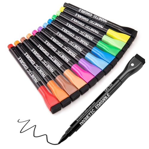 ABEIER whiteboard-pennor whiteboardtavla: 12 magnetiska whiteboardpennor och radergummi, 12 färger fin spets whiteboardmarkörer, låg-lukt, icke-giftiga fin punktspennor