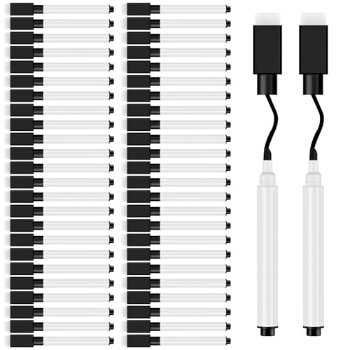 JEFURE Whiteboard märkpennor 50 stycken, whiteboard pennor magnetisk, svart foliepenna avtorkbar med suddgummi, avtorkbara pennor med fin spets för hem, skola, kontor