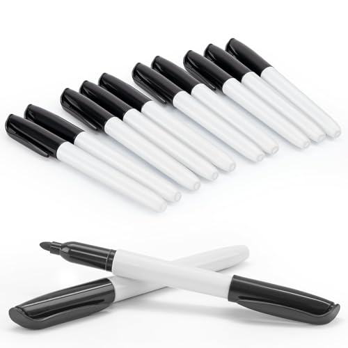 JEFURE Svart whiteboard markörer 12 stycken, whiteboard pennor med fin spets, foliepenna avtorkbar för whiteboards, anteckningsböcker och glas