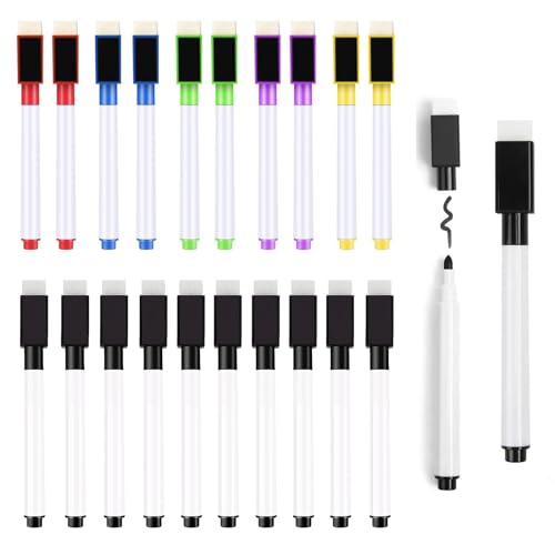 OFFCUP Markörer 20-Pack, Magnetiska Whiteboard Pennor Med Suddgummi, Extra Fin Punkt, För Att Skriva Planerare Glas Skola Hem Och Kontor (Polykrom)