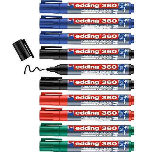 edding 360 whiteboardmarker - flera färger - låda med 10 pennor - rund spets 1,5–3 mm – torkas bort utan vatten – för whiteboard, blädderblock, anslagstavla, memo-tavla – sketcher – går att fylla på
