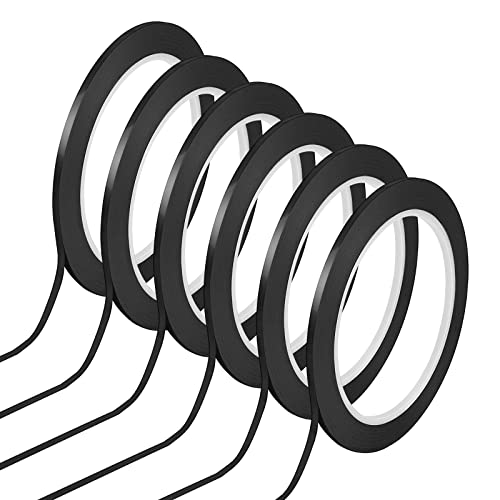 Fodattm 6 rullar grafisk konst tunn tejp självhäftande konstnärstejp rutnät markeringstejp whiteboard rutnätstejp torkningstejp 72 Yard per rulle (svart, bredd: 5 mm)