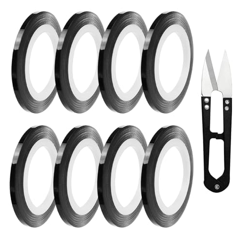 8 rullar med 3 mm grafikband, 1 par sax, svart tunn linje tejp, svart självhäftande tejp, svart tejp för whiteboard