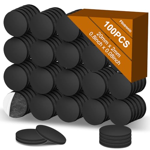 Flintronic 100 st självhäftande magneter, 20 mm runda magneter med självhäftande baksida, flexibla klibbiga magnetiska prickar, liten magnetisk tejp för hantverk, kylskåp, whiteboard, hängande och