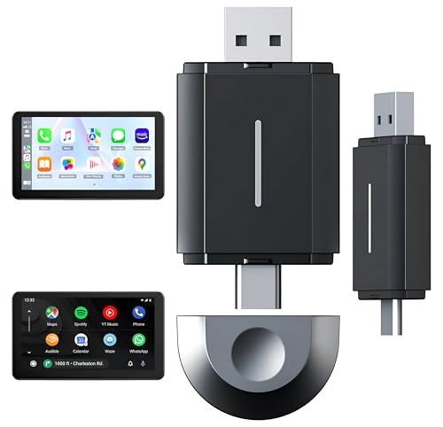2-i-1 trådlös adapter kompatibel med CarPlay och Android Auto, Dongel WiFi 5 GHz Plug & Play för snabb och stabil anslutning, kompatibel med 98% av bilarna (2015–2024), kompakt och bärbar
