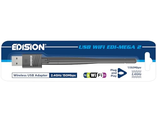 EDISION EDI-MEGA 2 USB-WiFi-adapter, MTK7601 WiFi dongel, 150 Mbps, 2,4 GHz, lutande antenn, kompatibel med T265 pro HD Peak, Ping T2/C, Proton S2 plus, Picknick, Windows och Linux