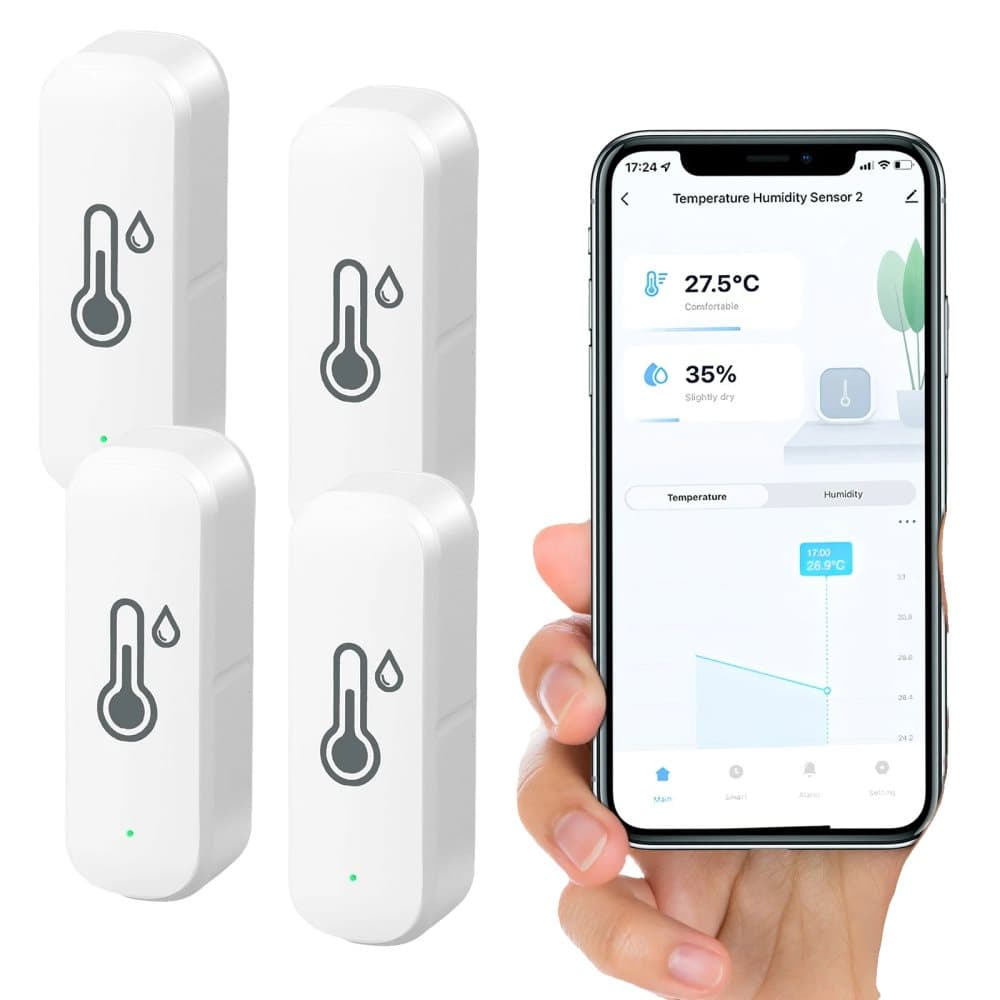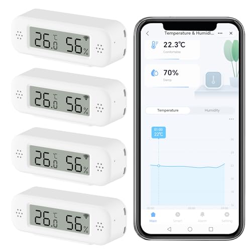 SPORTARC för Tuya WiFi Thermometer Hygrometer Indoor Room Thermometer WiFi Temperature Sensor Thermohygrometer with App Notification and Data Storage, 4 Pieces