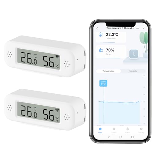 PHOVOLT WiFi-hygrometer termometersensor för hem, inomhus och utomhus, trådlös temperaturfuktighetssensor, monitor med fjärrkontroll, app med aviseringsvarning, fungerar med Tuya-appen, för hemväxthus (2-pack)