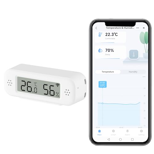 PHOVOLT WiFi-hygrometer termometersensor för hem, inomhus och utomhus, trådlös temperaturfuktighetssensor, monitor med fjärrkontroll, app med aviseringsvarning, fungerar med Tuya-appen, för hemväxthus (1-pack)