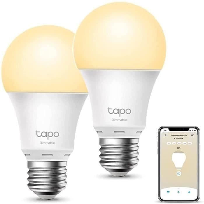 TP-Link Tapo Wifi Smart Bulb, varmvit E27 LED-lampa, kompatibel med Alexa, Google Home och Siri Set med 2 Tapo L510E
