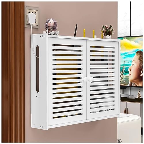 Vit Flytande Hyllor, WiFi Storage Box, (liten Slutare) Väggmonterad WiFi Router Storage Box, Router Modem Wall Mount (Color : White, S : 50x10x40cm)