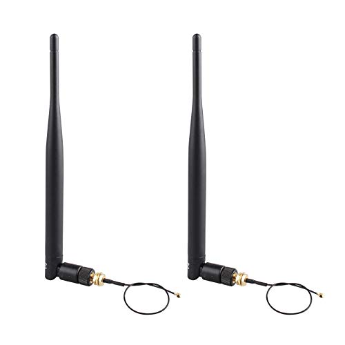 Jopto 2 st 2,4 G 5,8 g dubbelt band hög vinst trådlös routerantenn 5 DBI WiFi rundriktad antenn RP-SMA honkontakt med 15 cm U.FL mini PCI till RP-SMA hane pigtail RF 1,13 antenn WiFi-kabel