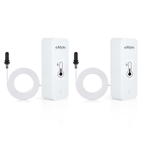 eMylo Utomhus- och inomhustermometer, wifi-ansluten termometer, app-larm, dataexport, termometer, kylskåpsskärm, lämplig för sovrum, akvarium, kylskåp, vit 2 st
