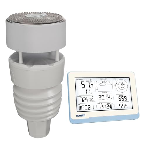 ECOWITT Väderstation med utomhussensor HP2564, med wifi och internetradio, 7-i-1-väderstation, regnmätare, väderprognos, anemometer, TFT-färgdisplay för inomhusbruk med pekknapp