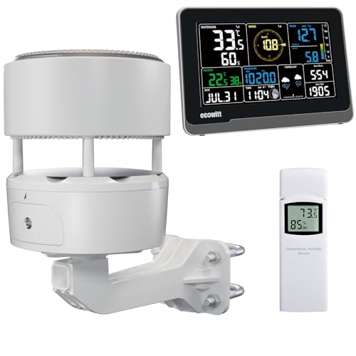 Ecowitt Wi-Fi väderstation Array, 7-i-1 trädgård trådlös sol väder-utomhussensor WS69 3-i-1 hus inomhus 7,5 tum färg-LCD-storvisningskonsol, väderövervakningssystem 868 MHZ